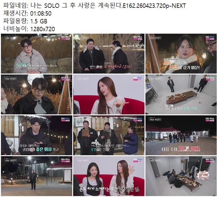 | 나는 SOLO 그 후 사랑은 계속된다.E162.260423.720p-NEXT.mp4 | 1.5 G | - | 1280x720 |