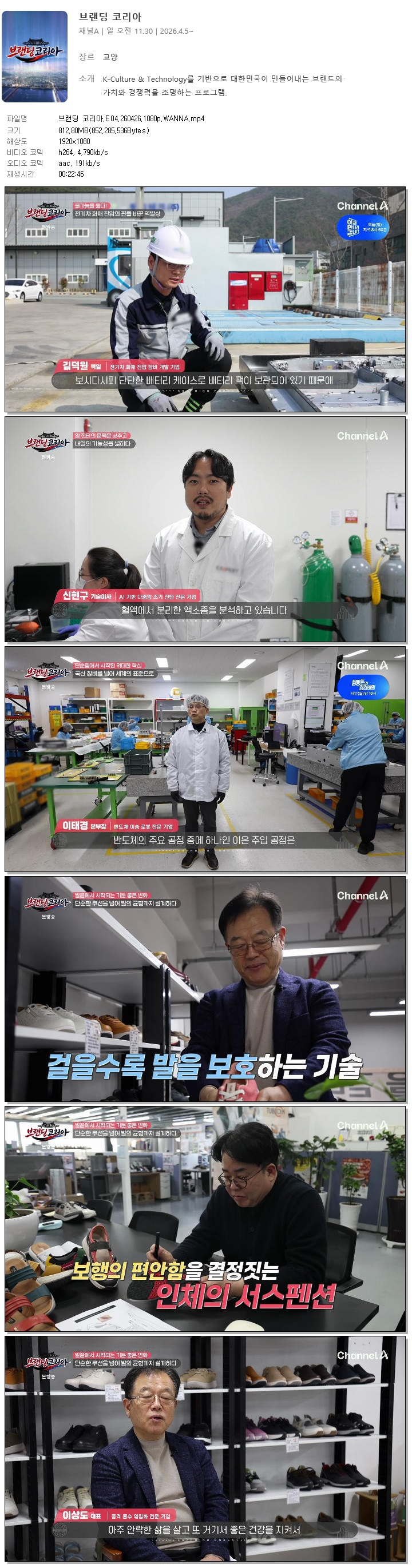 | [채널A] 브랜딩 코리아.E04.260426.1080p.WANNA.mp4 | 812.8 M | 00:22:46 | 1920x1080 |