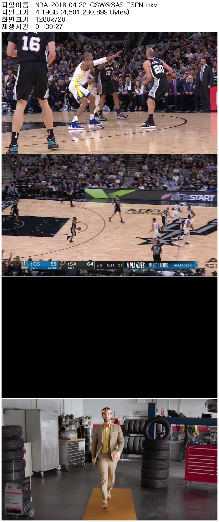 ico[NBA]1718시즌 PO1R 4차전 샌안토니오 vs 골든스테이트 180423[초고화질,720P60fps]/