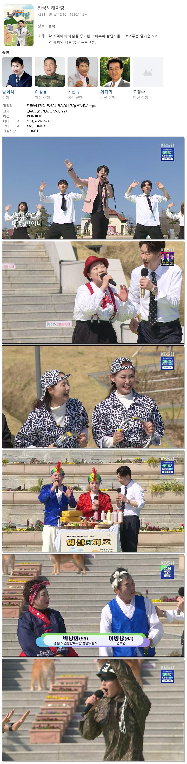 [KBS1] 전국노래자랑.E2324.260426.1080p.WANNA[남희석] 다시보기 토렌트