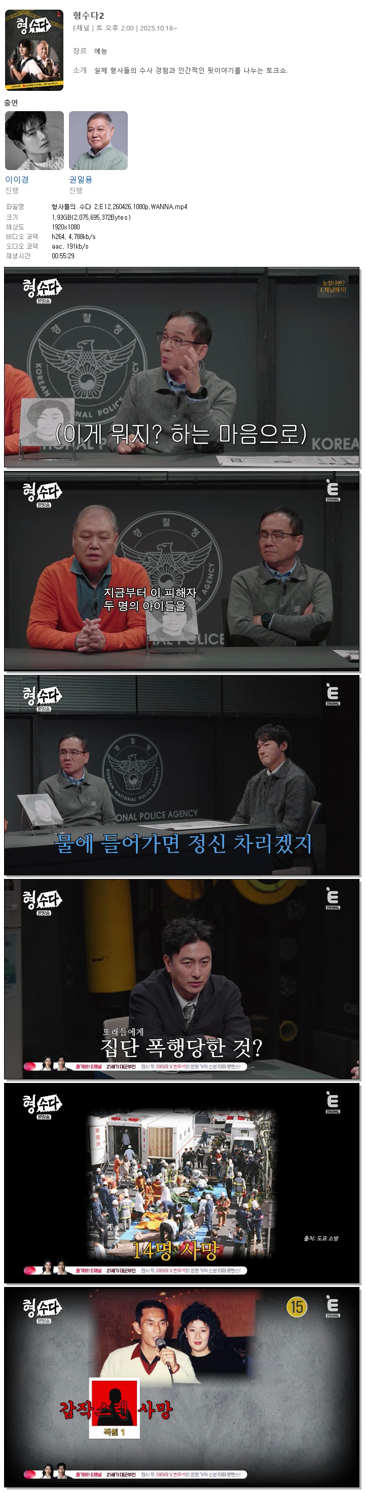 | [E채널] 형사들의 수다 2.E12.260426.1080p.WANNA[안정환, 권일용].mp4 | 1.9 G | 00:55:29 | 1920x1080 |