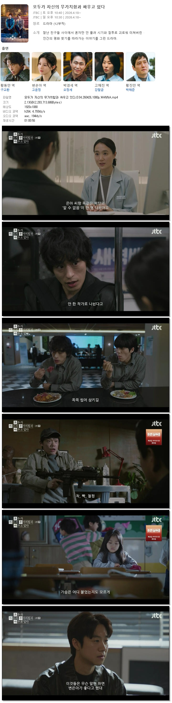 [JTBC] 모두가 자신의 무가치함과 싸우고 있다.E04.260426.1080p.WANNA[구교환, 고윤정] 다시보기 토렌트