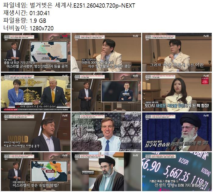| 벌거벗은 세계사.E251.260420.720p-NEXT.mp4 | 1.9 G | - | 1280x720 |