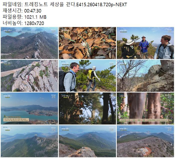 | 트레킹노트 세상을 걷다.E415.260418.720p-NEXT.mp4 | 1021.1 M | - | 1280x720 |