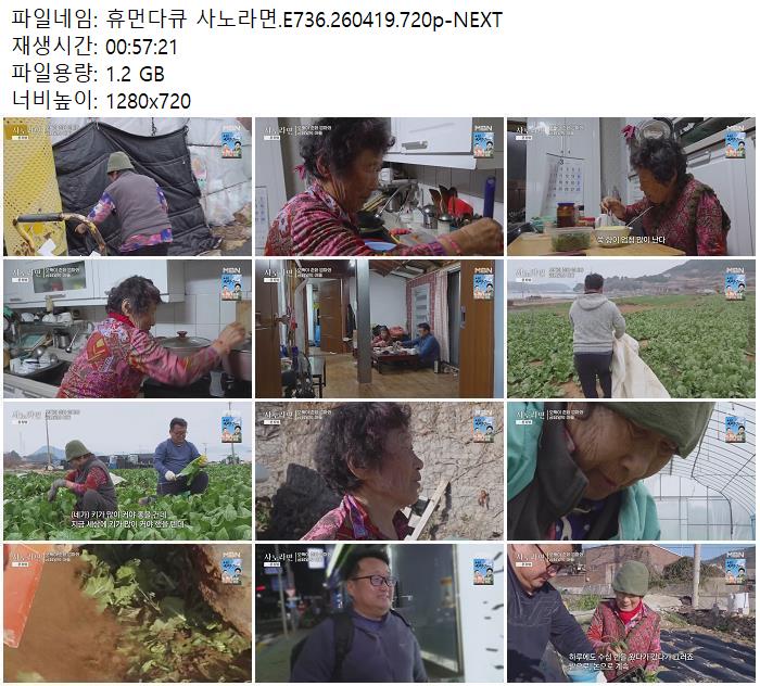 휴먼다큐 사노라면.E736.260419.720p-NEXT.mp4 1.2 G - 1280x720