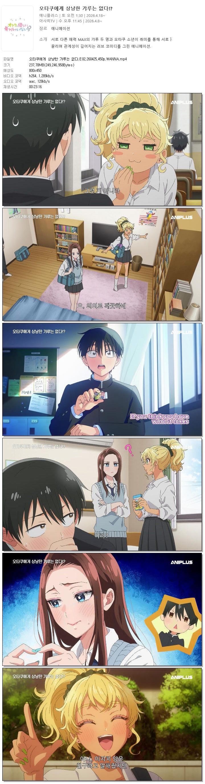 | 오타쿠에게 상냥한 갸루는 없다.E02.260425.450p.WANNA.mp4 | 237.7 M | 00:23:16 | 800x450 |