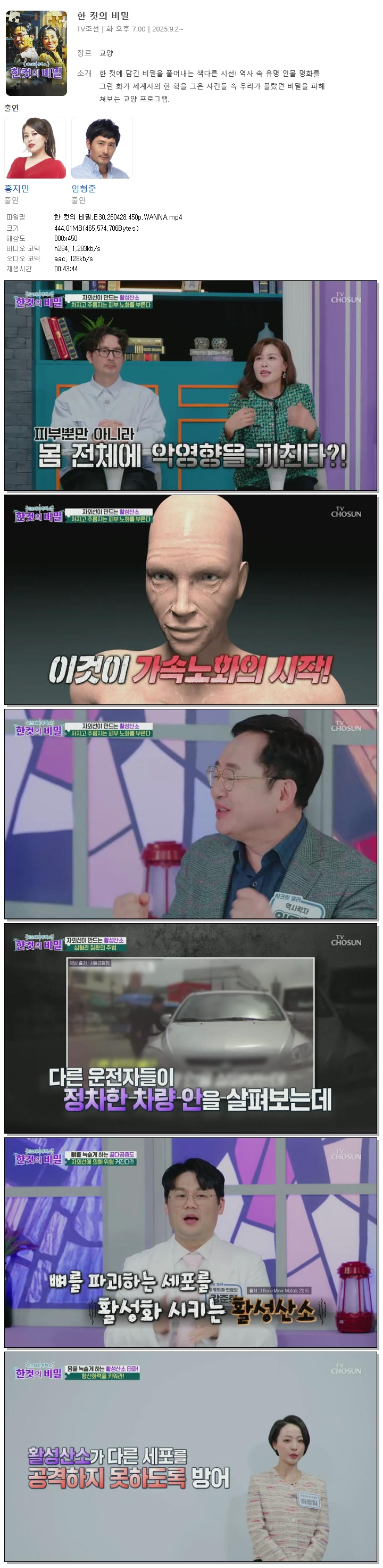 | [TV조선] 한 컷의 비밀.E30.260428.450p.WANNA[홍지민, 임형준].mp4 | 444 M | 00:43:44 | 800x450 |