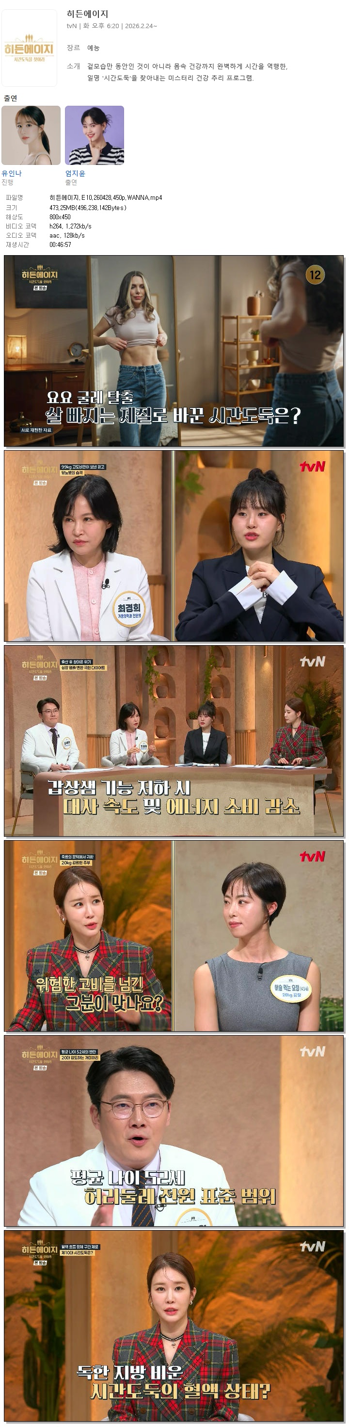 | [TVN] 히든에이지.E10.260428.450p.WANNA[유인나, 엄지윤].mp4 | 473.2 M | 00:46:57 | 800x450 |