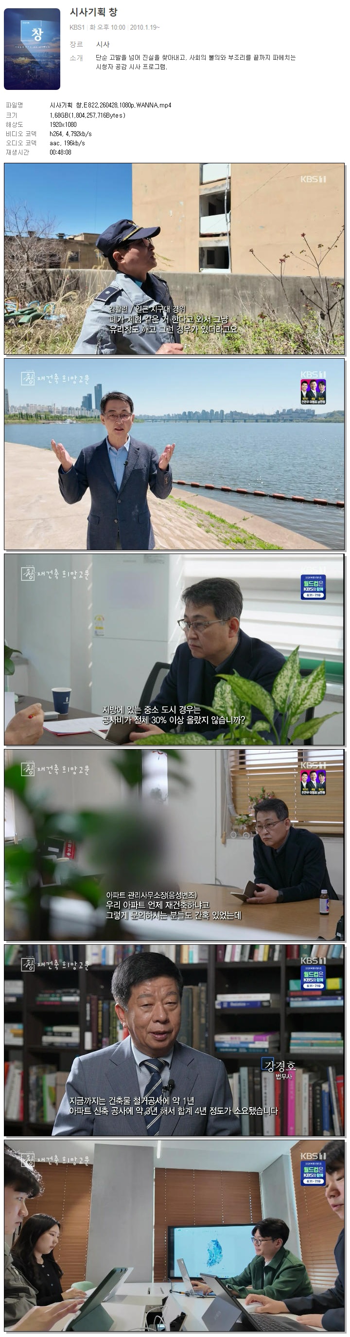 | [KBS1] 시사기획 창.E822.260428.1080p.WANNA.mp4 | 1.7 G | 00:48:08 | 1920x1080 |