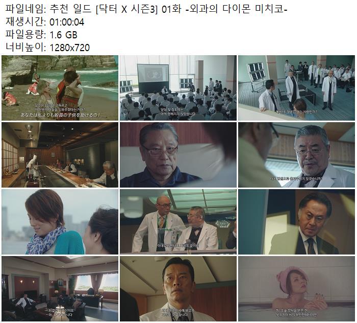 | 추천 일드 [닥터 X 시즌3] 01화 -외과의 다이몬 미치코-.mp4 | 1.6 G | 01:00:04 | 1280x720 |