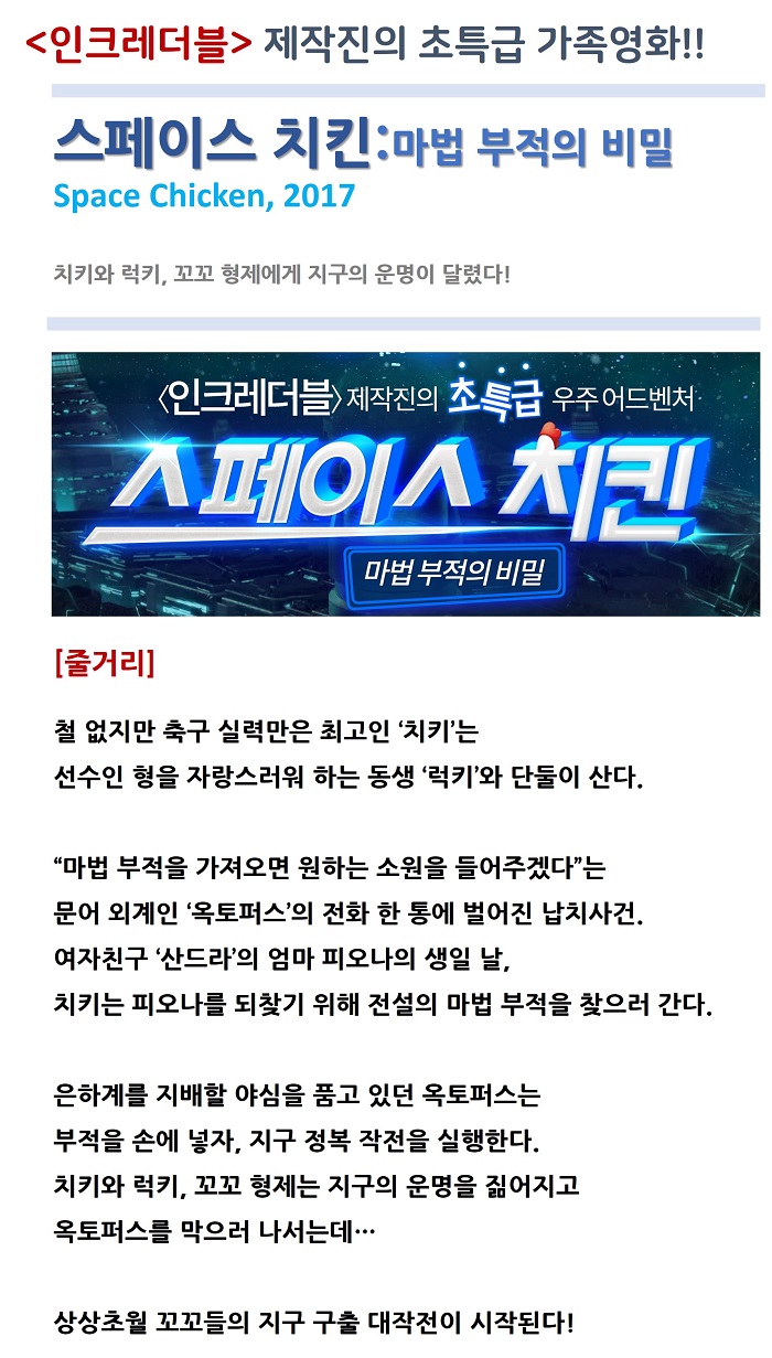 올 가을 최고 가족 애니 [ 스페이스 치킨 마법 부적의 비밀 ]1123 다시보기 토렌트