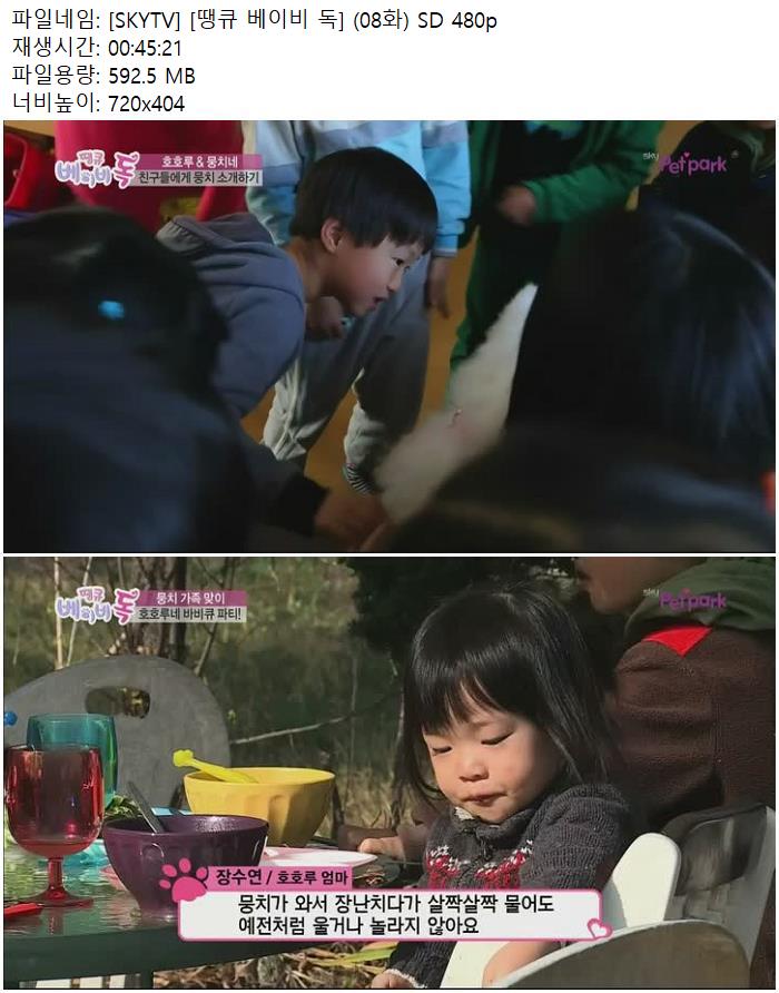 [SKYTV] [땡큐 베이비 독] (08화) SD 480p.mp4 592.5 M 00:45:21 720x404