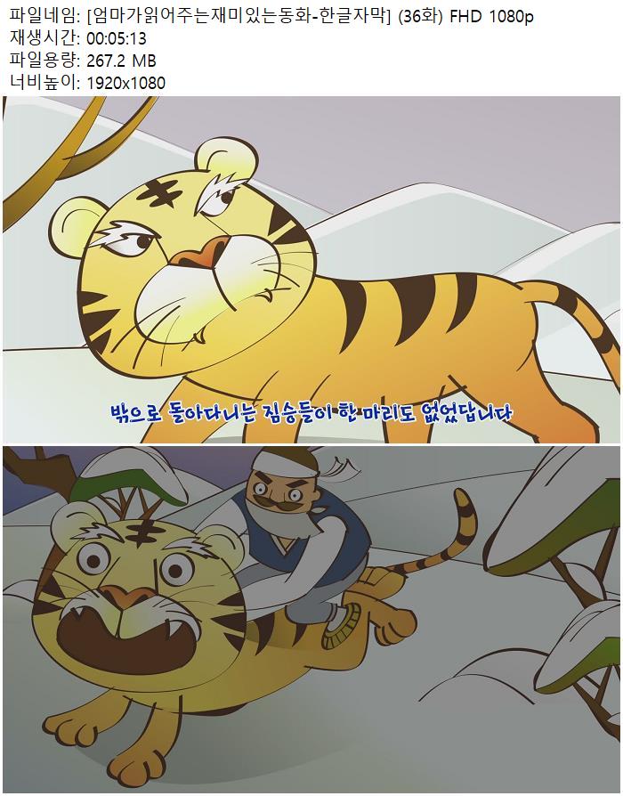 | [엄마가읽어주는재미있는동화-한글자막] (36화) FHD 1080p.mp4 | 267.2 M | 00:05:13 | 1920x1080 |