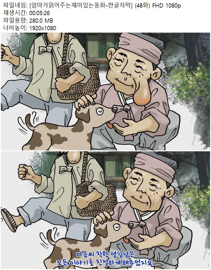 | [엄마가읽어주는재미있는동화-한글자막] (48화) FHD 1080p.mp4 | 280 M | 00:05:26 | 1920x1080 |