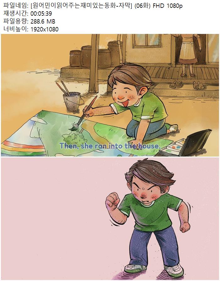 | [원어민이읽어주는재미있는동화-자막] (06화) FHD 1080p.mp4 | 288.6 M | 00:05:39 | 1920x1080 |