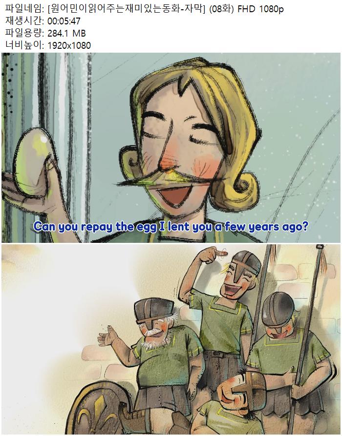 | [원어민이읽어주는재미있는동화-자막] (08화) FHD 1080p.mp4 | 284.1 M | 00:05:47 | 1920x1080 |