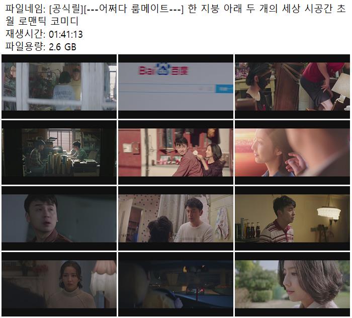 | [공식릴][---어쩌다 룸메이트---] 한 지붕 아래 두 개의 세상 시공간 초월 로맨틱 코미디.mp4 | 2.6 G | 01:41:13 | 1280x720 |