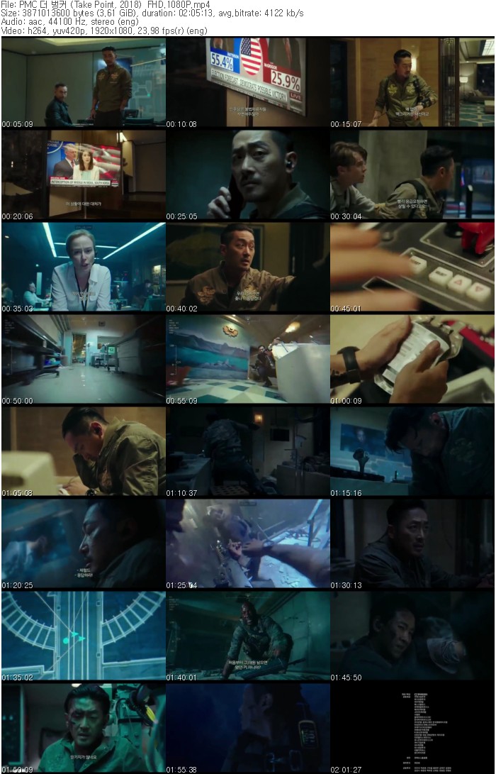 | PMC 더 벙커 (Take Point, 2018) FHD.1080P.mp4 | 3.6 G | 02:05:13 | 1920x1080 |