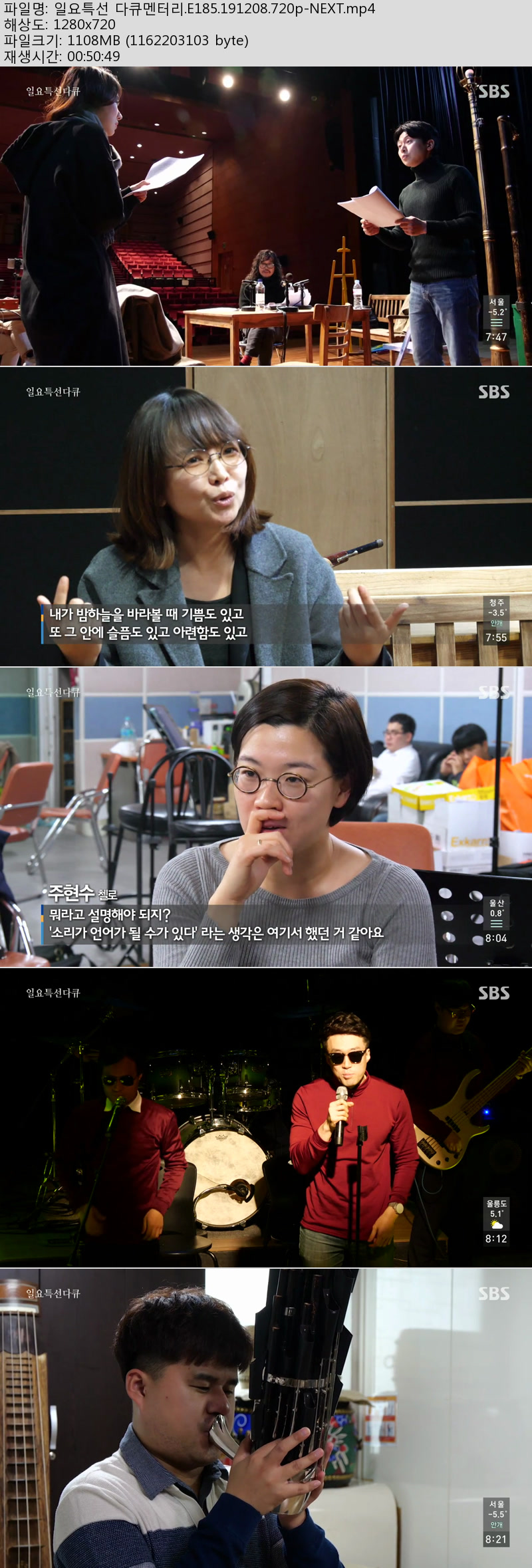 | 일요특선 다큐멘터리.E185.191208.720p-NEXT.mp4 | 1.1 G | - | 1280x720 |