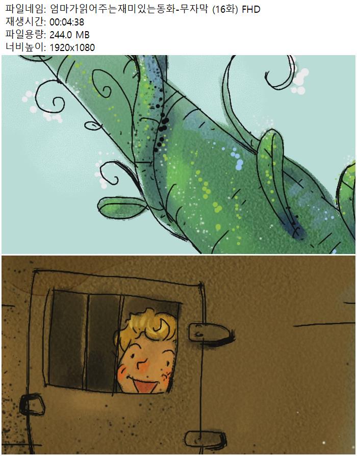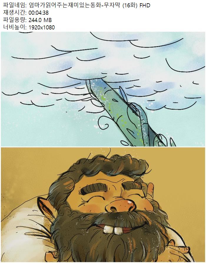| 엄마가읽어주는재미있는동화-무자막 (16화) FHD.mp4 | 244 M | 00:04:38 | 1920x1080 |