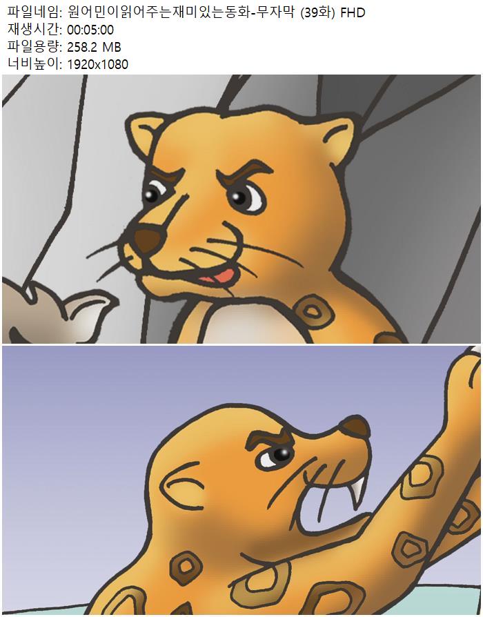 | 원어민이읽어주는재미있는동화-무자막 (39화) FHD.mp4 | 258.2 M | 00:05:00 | 1920x1080 |