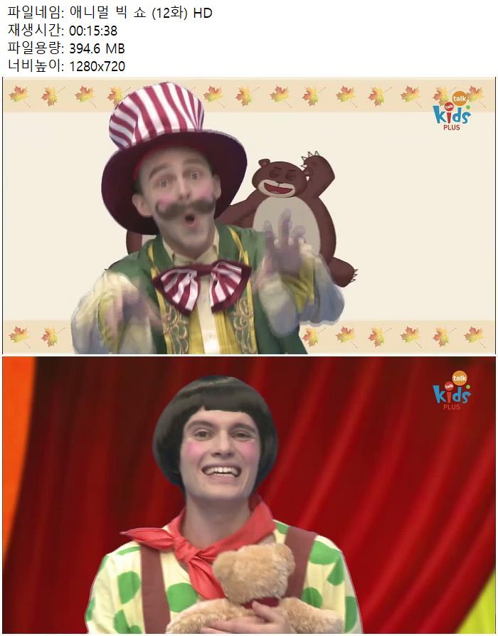 | 애니멀 빅 쇼 (12화) HD.mp4 | 394.6 M | 00:15:38 | 1280x720 |