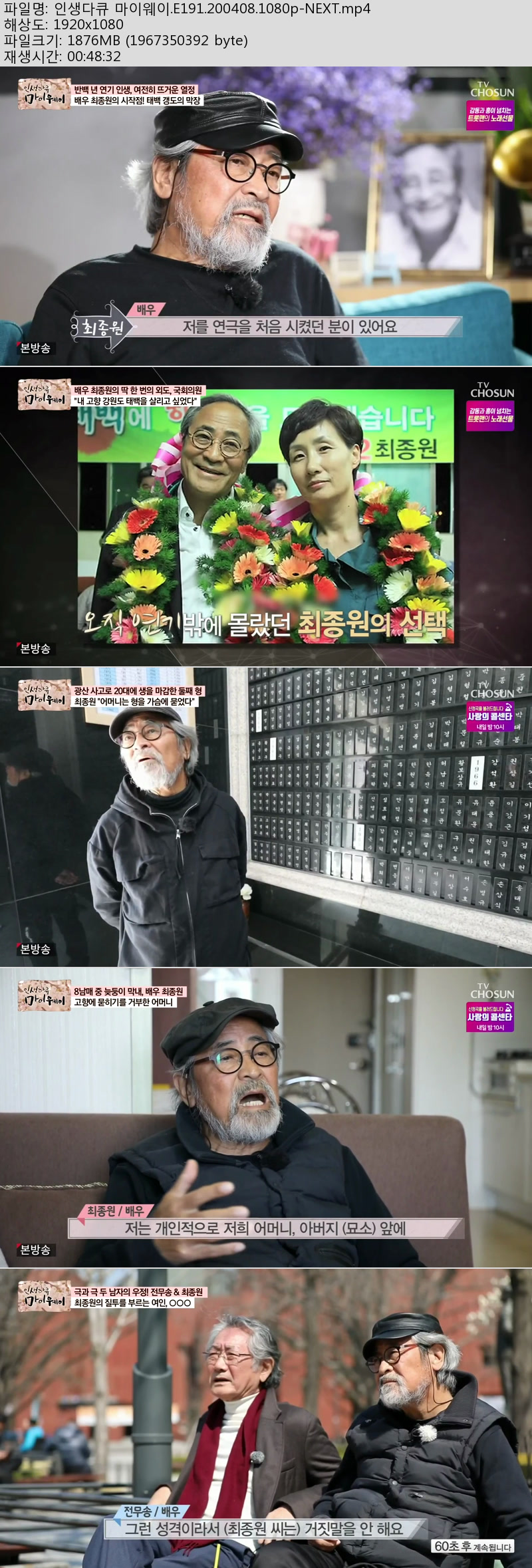 | 인생다큐 마이웨이.E191.200408.1080p-NEXT.mp4 | 1.8 G | - | 1920x1080 |