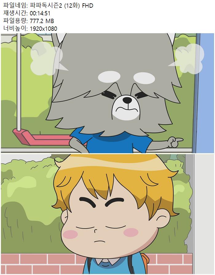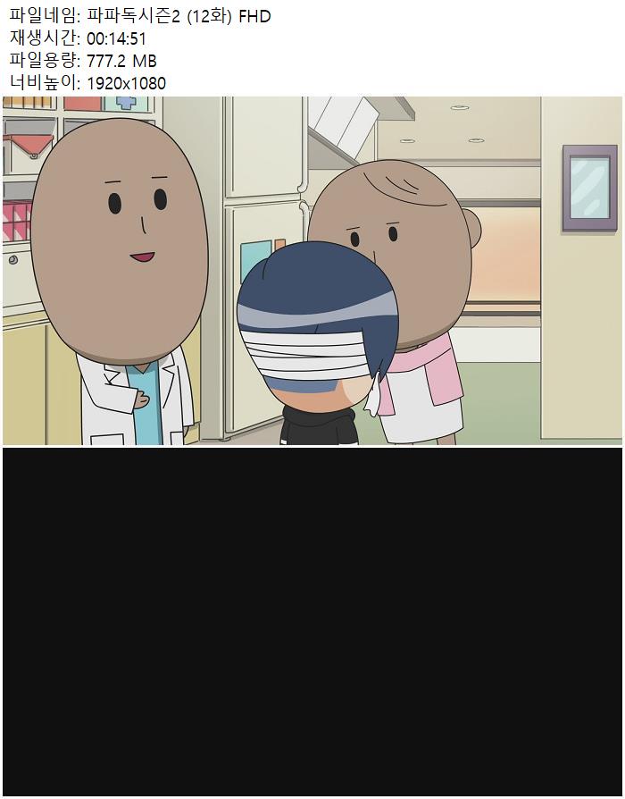 | 파파독시즌2 (12화) FHD.mp4 | 777.2 M | 00:14:51 | 1920x1080 |