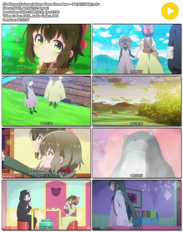 | [Erai-raws] Kuma Kuma Kuma Bear - 06 [v0][1080p].mkv | 1.3 G | 00:23:50 | 1920x1080 |