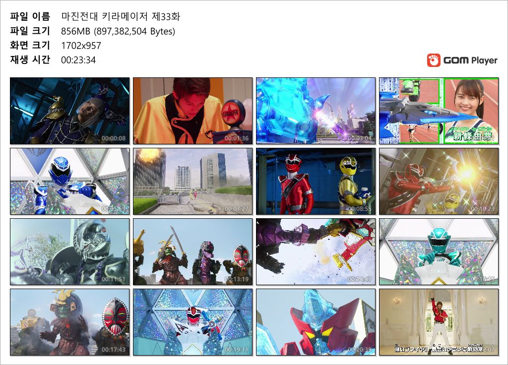 | 마진전대 키라메이저 제33화.mkv | 855.8 M | 00:23:34 | 1920x1080 |