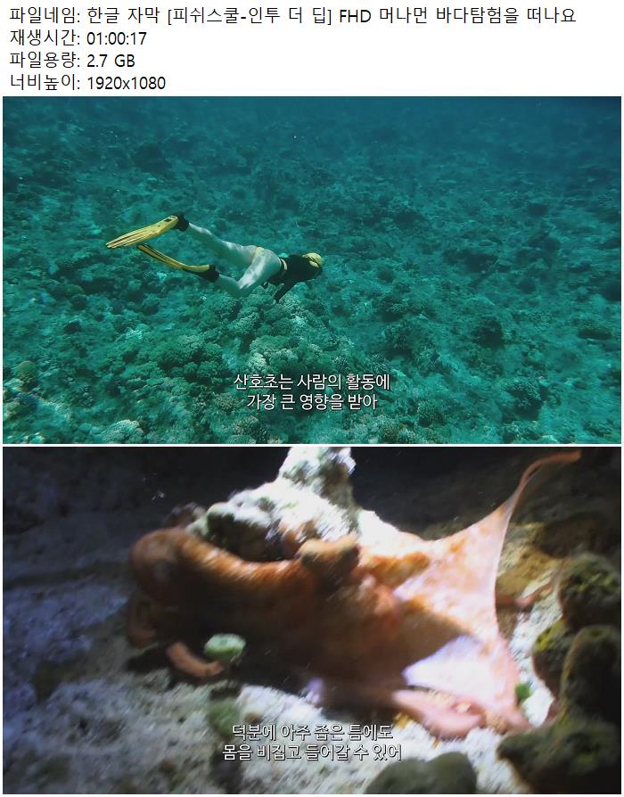 [피쉬스쿨-인투더딥] FHD 한글 자막.mp4 2.7 G 01:00:17 1920x1080