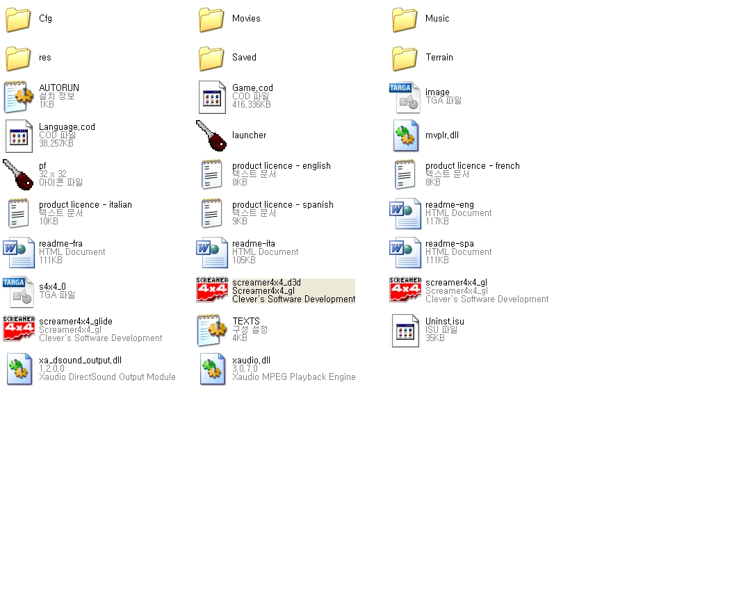 위의 스샷에 보이는 screamer4x4_d3d 파일로 실행하시기 바랍니다