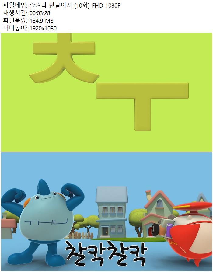 | 즐겨라 한글이지 (10화) FHD 1080P.mp4 | 184.9 M | 00:03:28 | 1920x1080 |