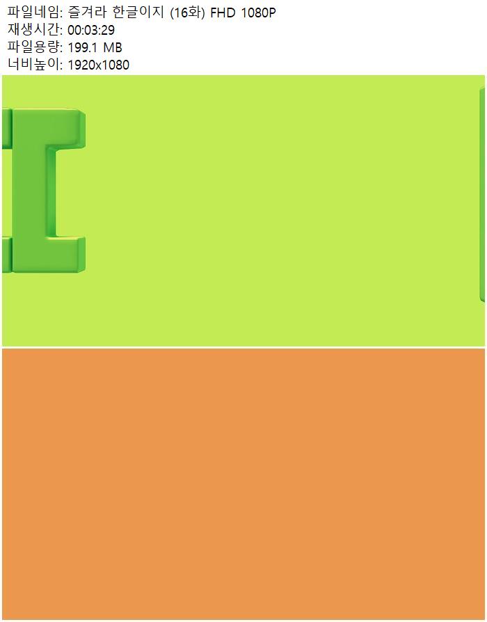 | 즐겨라 한글이지 (16화) FHD 1080P.mp4 | 199.1 M | 00:03:29 | 1920x1080 |