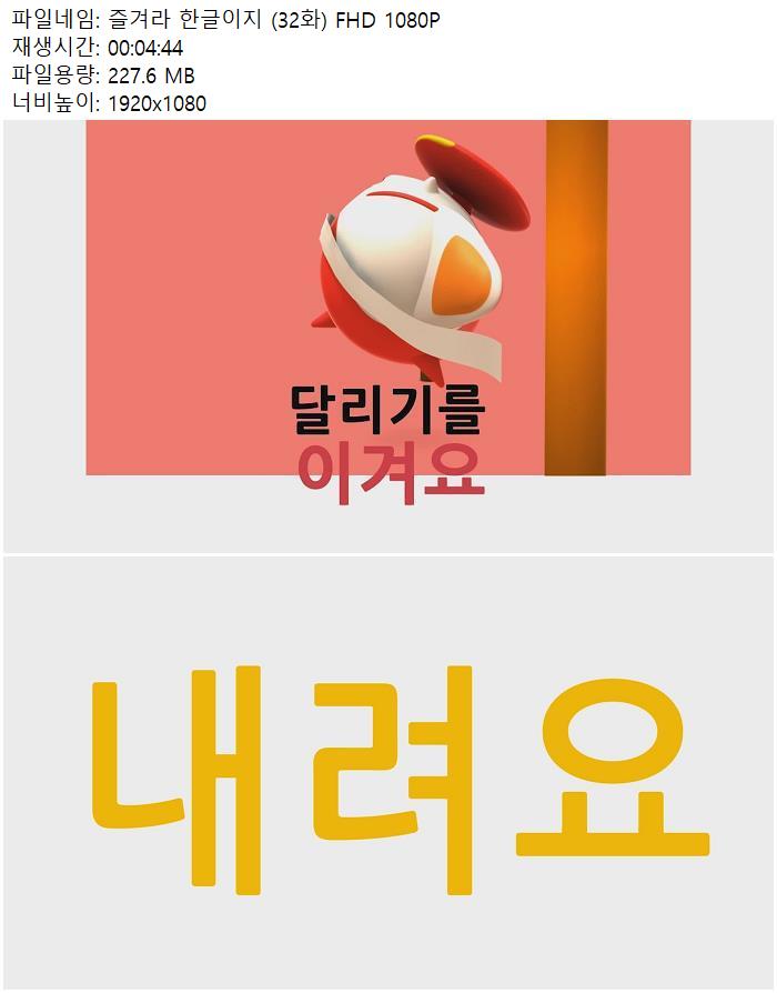 즐겨라 한글이지 (32화) FHD 1080P.mp4 227.6 M 00:04:44 1920x1080