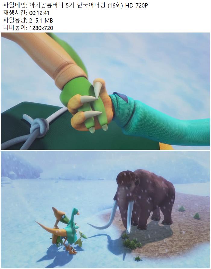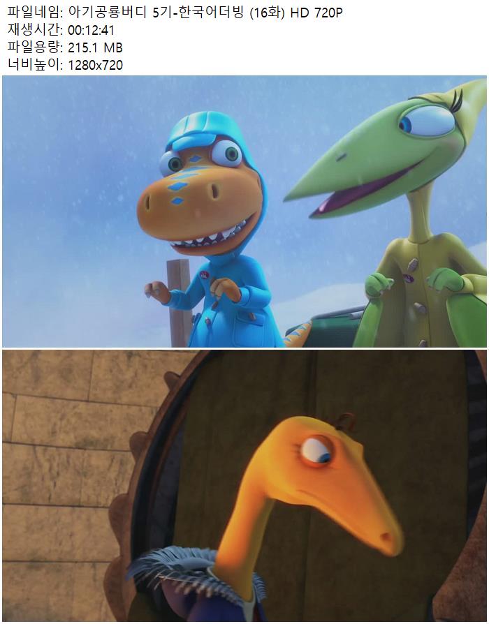| 아기공룡버디 5기-한국어더빙 (16화) HD 720P.mp4 | 215.1 M | 00:12:41 | 1280x720 |