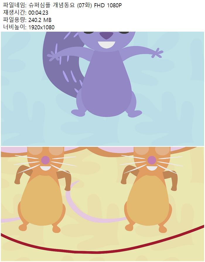 | 슈퍼심플 개념동요 (07화) FHD 1080P.mp4 | 240.2 M | 00:04:23 | 1920x1080 |