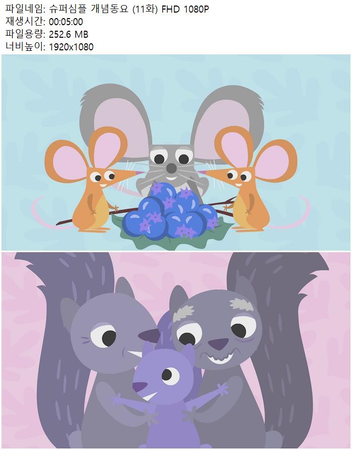 | 슈퍼심플 개념동요 (11화) FHD 1080P.mp4 | 252.6 M | 00:05:00 | 1920x1080 |