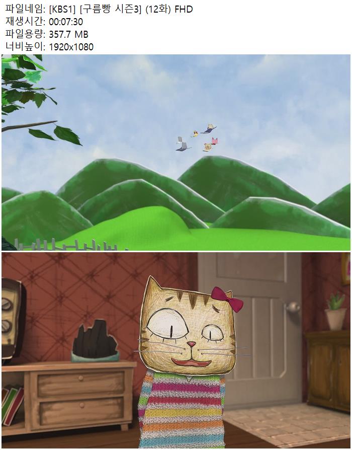 | [KBS1] [구름빵 시즌3] (12화) FHD.mp4 | 357.7 M | 00:07:30 | 1920x1080 |