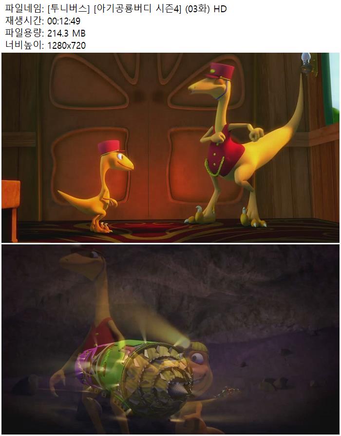 | [투니버스] [아기공룡버디 시즌4] (03화) HD.mp4 | 214.3 M | 00:12:49 | 1280x720 |