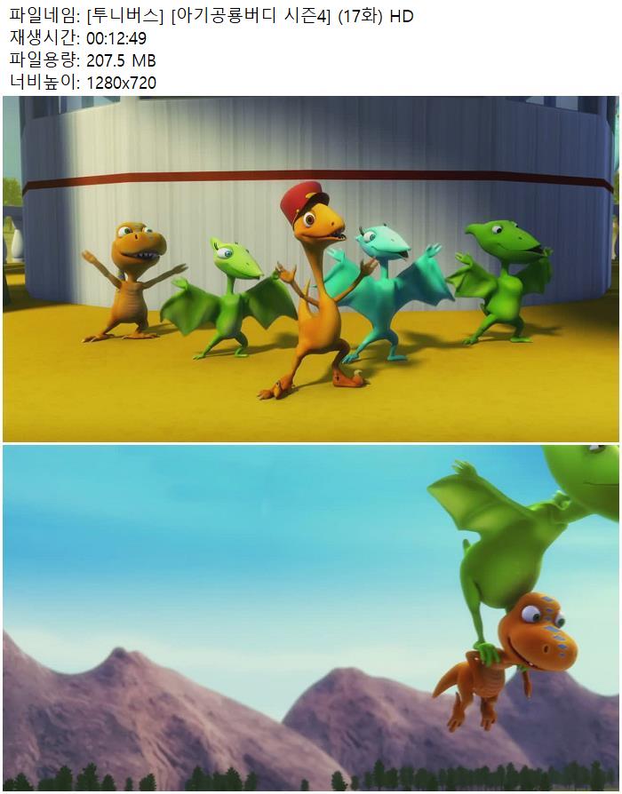 | [투니버스] [아기공룡버디 시즌4] (17화) HD.mp4 | 207.5 M | 00:12:49 | 1280x720 |