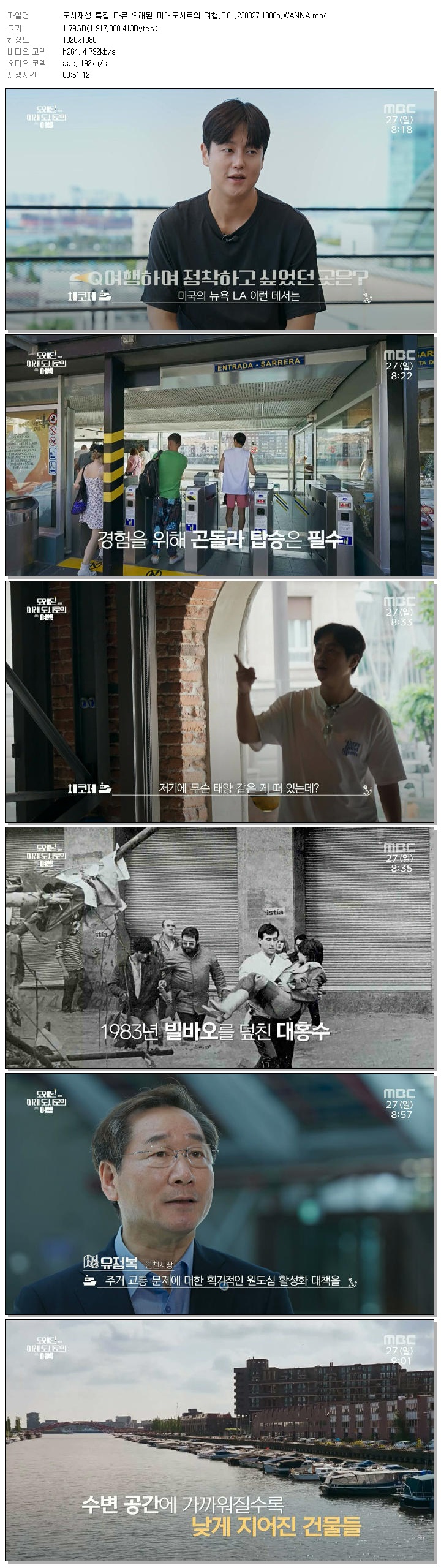| 도시재생 특집 다큐 오래된 미래도시로의 여행.E01.230827.1080p.WANNA.mp4 | 1.8 G | 00:51:12 | 1920x1080 |