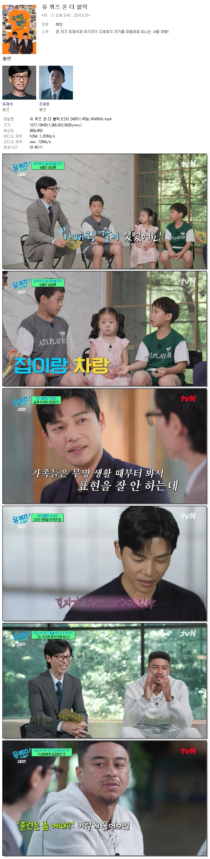 | 유 퀴즈 온 더 블럭.E261.240911.450p.WANNA.mp4 | 1017.2 M | 01:40:11 | 800x450 |