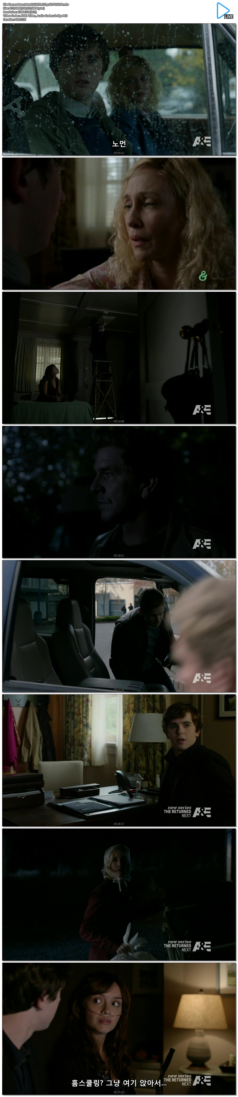 | Bates.Motel.S03E01.720p.HDTV.X264.mkv | 875.7 M | 00:42:26 | 1280x720 |