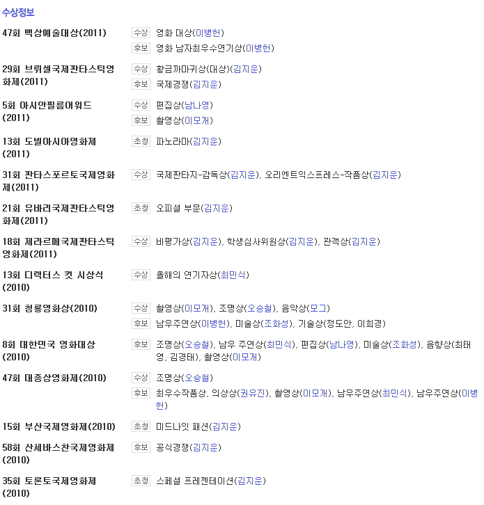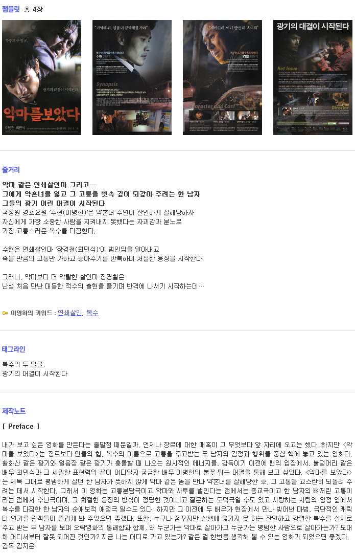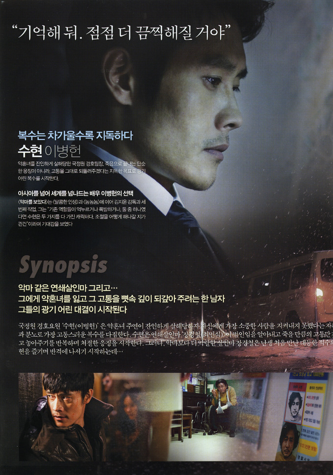 | I Saw the Devil (2010) 1080p x264.mkv | 2.6 G | 02:22:11 | 1920x1080 |