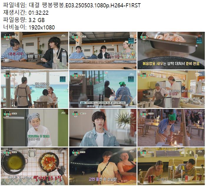 | 대결! 팽봉팽봉.E03.250503.1080p.H264-F1RST.mp4 | 3.2 G | 01:32:00 | 1920x1080 |