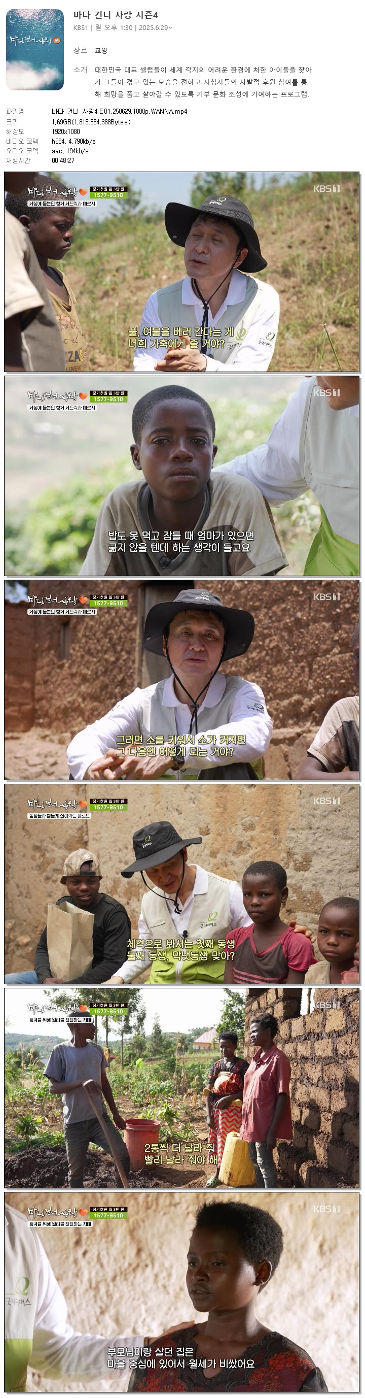 | [KBS1] 바다 건너 사랑4.E01.250629.1080p.WANNA.mp4 | 1.7 G | 00:48:27 | 1920x1080 |