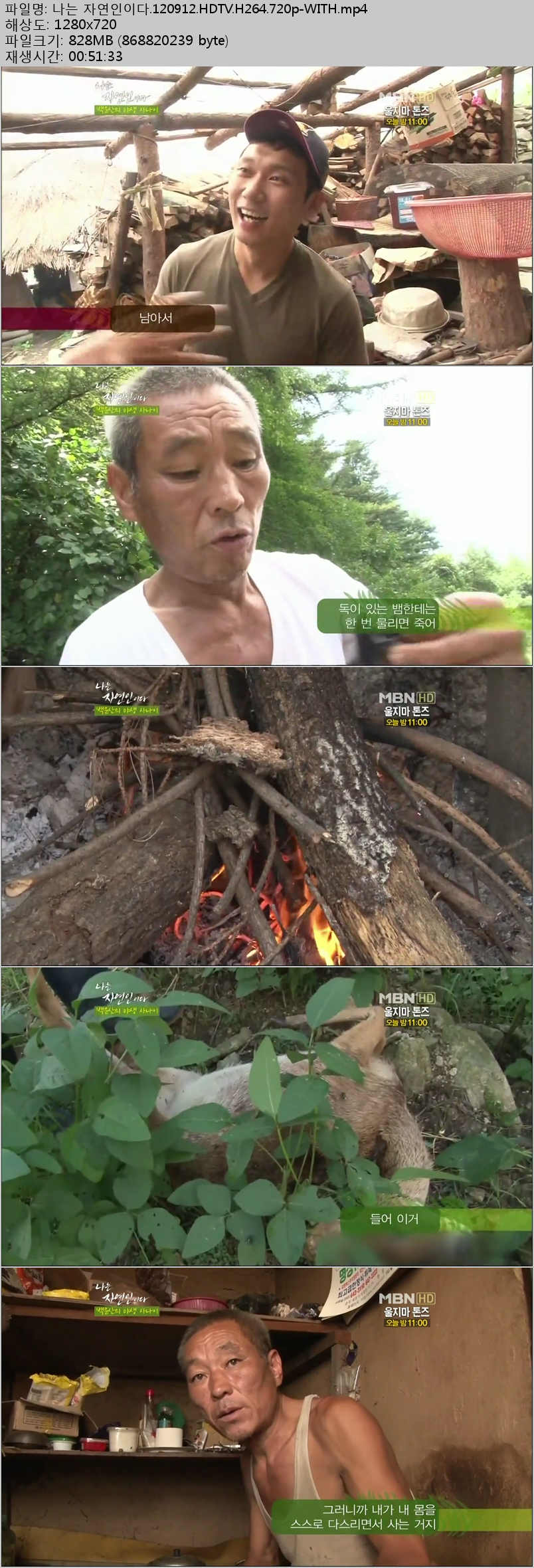 | 나는 자연인이다.120912.HDTV.H264.720p-WITH.mp4 | 828.6 M | 00:51:33 | 1280x720 |