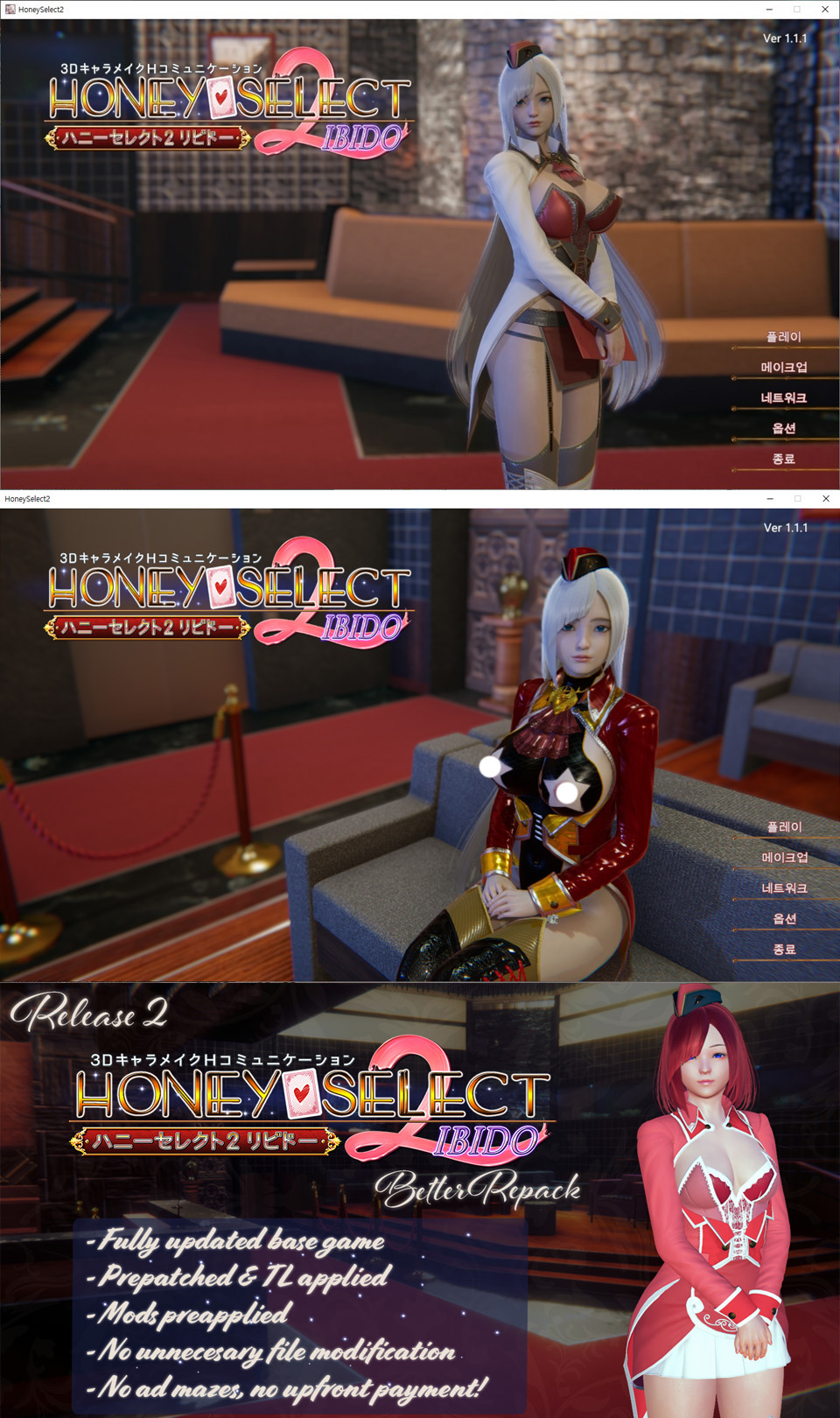 ico허니셀렉트 2 - H 3D 캐릭터 메이크 시뮬레이션 한글 무설치 (BR팩R2,mod,프리셋) v1.1.1 - Honey Select 2/