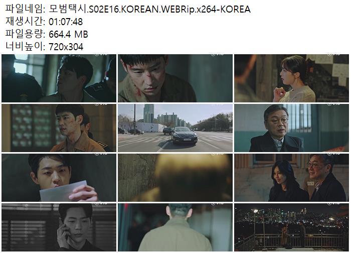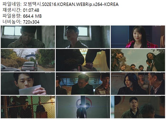| 모범택시.S02E16.KOREAN.WEBRip.x264-KOREA.mp4 | 664.4 M | 01:07:48 | 720x304 |